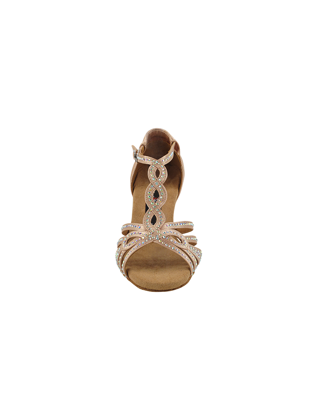 VeryFine Dance Shoes CD2001CC – eleganter Damen-Tanzschuh in hellbeigem Satin mit Strasssteinchen. Ideal für Salsa, Bachata & Kizomba, exklusiv bei VeryFine Schweiz.
