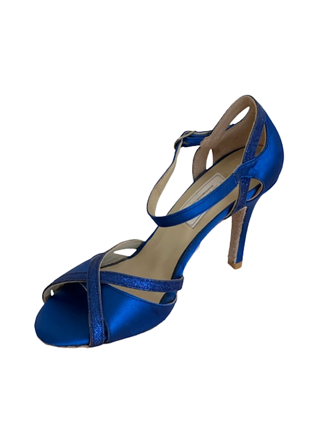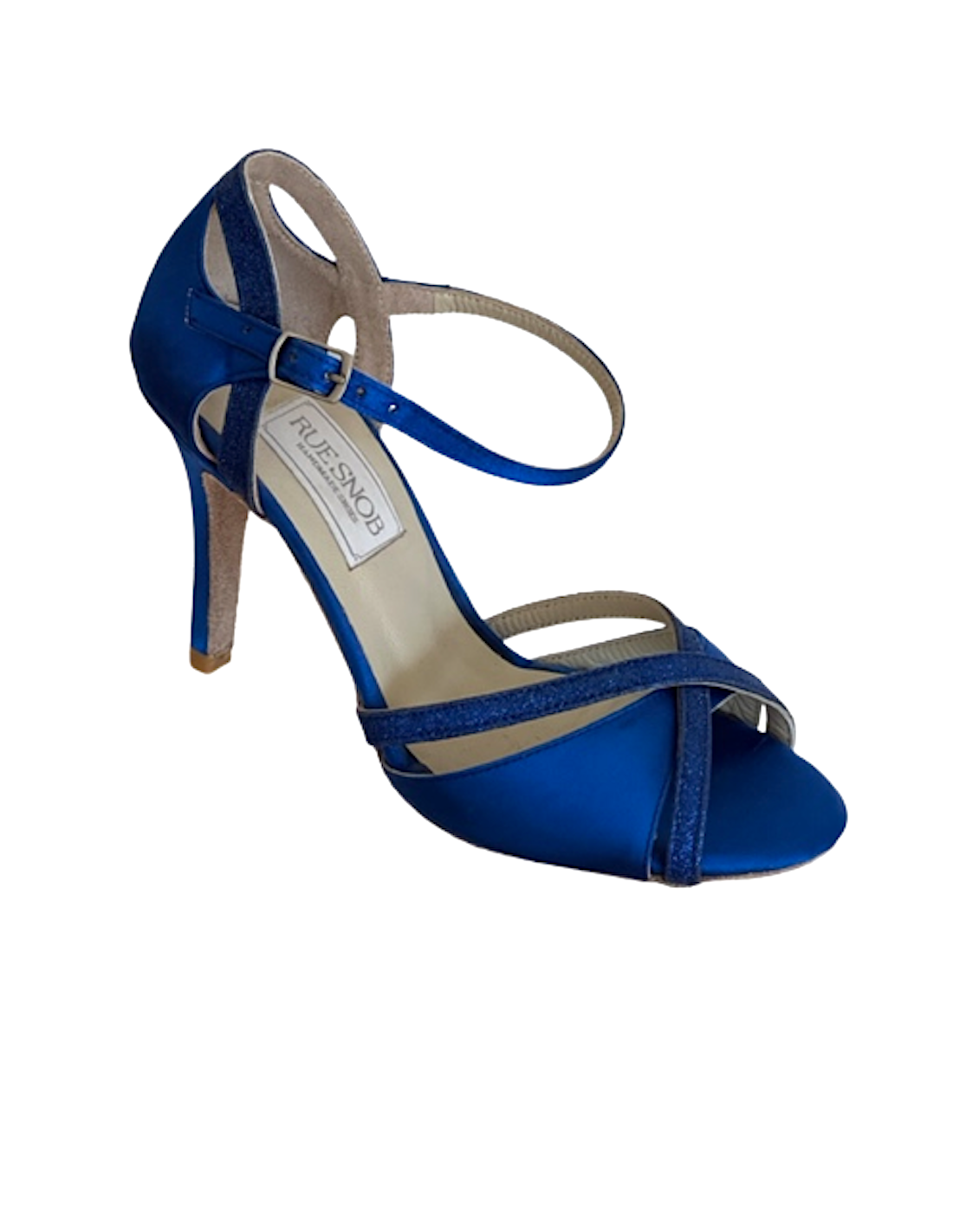 Tanzschuhe aus königsblauem Satin mit Glitzeriemen für Tango Argentino, Kizomba