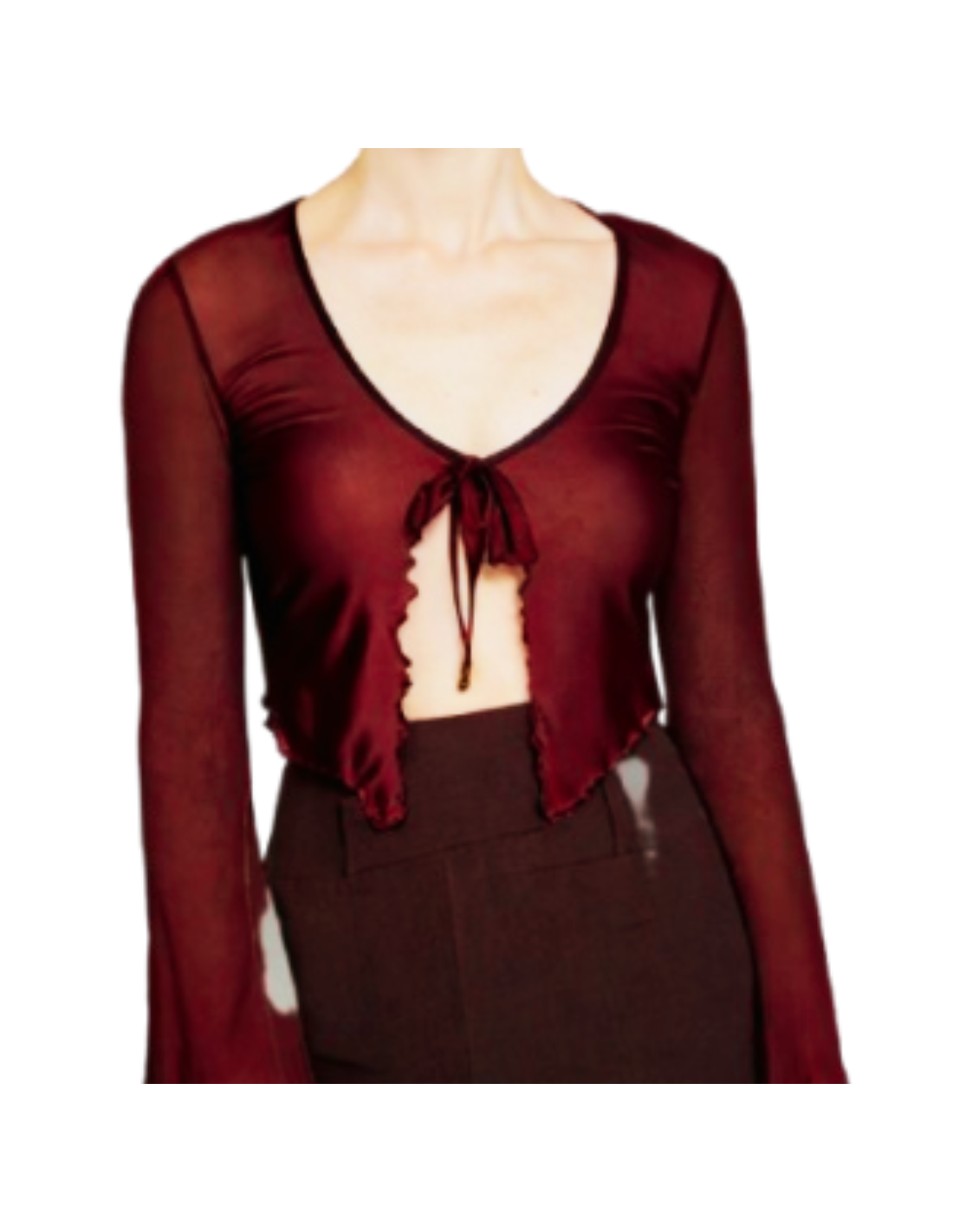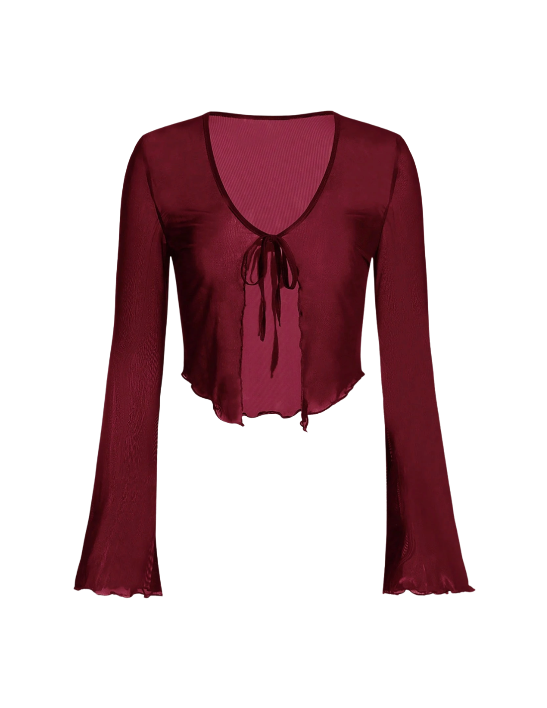 Eleganter Bolero aus weinrotem Mesh mit gewelltem Abschluss – perfekt über einem Tanzkleid und ideal kombinierbar mit Ihren Dance Shoes Zurich für stilvolle Auftritte an kühleren Abenden.