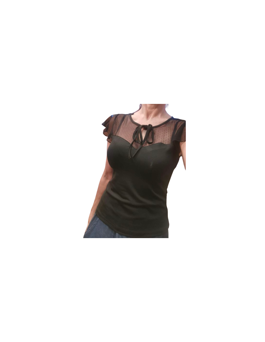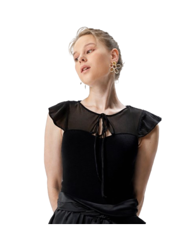 Dieses bezaubernde Retro-Tanztop vereint zeitlos elegante Linienführung mit modernen Details und ist die perfekte Wahl für Tango oder einen Tanzabend. Das klassische Schwarz wird durch die transparenten Mesh-Ärmel stilvoll ergänzt und verleiht deinem Tanzoutfit eine feminine und elegante Note.