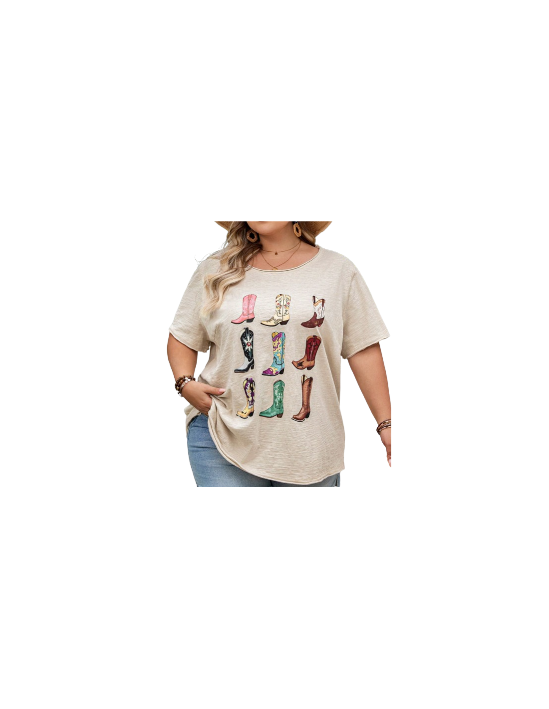 Linedance boot print T-shirt beige XL sizes