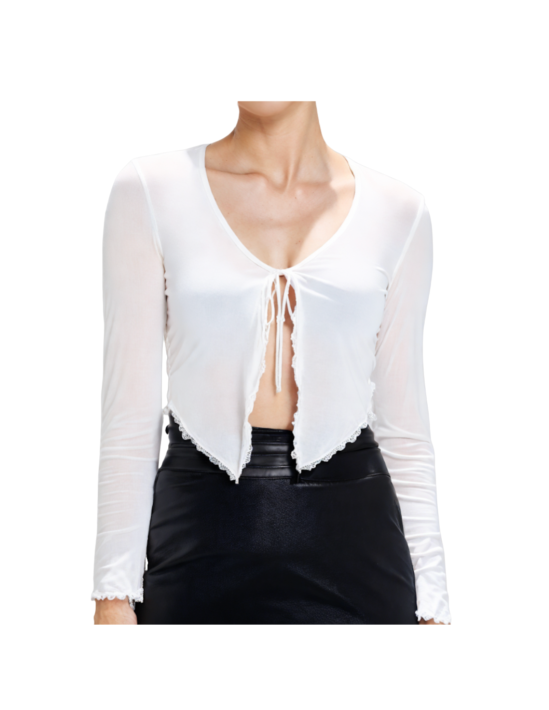 Dieser süsse Bolero aus hochwertigem, weissem Mesh verleiht jedem Tanzoutfit einen Hauch von Eleganz. Der sanft gewellte Abschluss rundet das Design feminin ab und macht den Bolero zur perfekten Ergänzung für kühle Abende – ob auf dem Weg ins Tanzstudio, zu Auftritten oder beim geselligen Beisammensein. Besonders harmonisch lässt sich der Bolero zu Ihrem Lieblingskleid kombinieren, um einen vollendeten, stilbewussten Look zu kreieren.