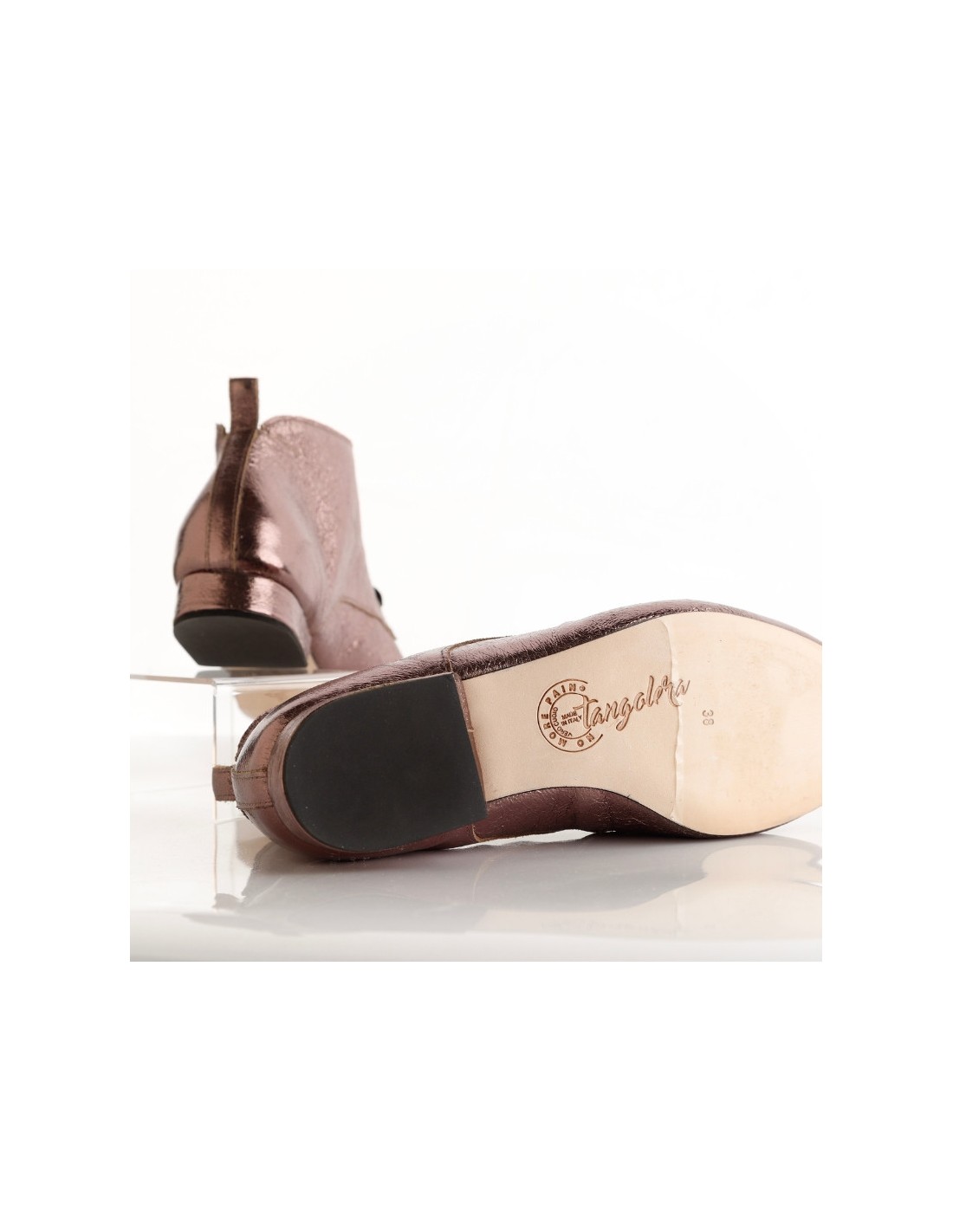 Egal, ob Sie sich auf Ihre nächste Practica vorbereiten oder privat tanzen, der Tangolera Scarponcino Bronzo aus bronzefarbenem Nappaleder ist so konzipiert, dass Sie stilvoll, stabil und schmerzfrei tanzen können.