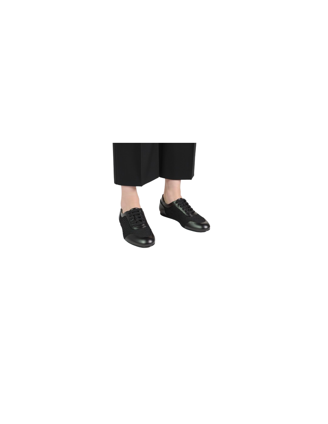 Sportlicher Damentanzsneaker von Top Tanz 4012 Ocean aus schwarzem Leder & Mesh – mit herausnehmbarem Korkfussbett und Chromledersohle. Ideal für Salsa, Bachata oder Linedance