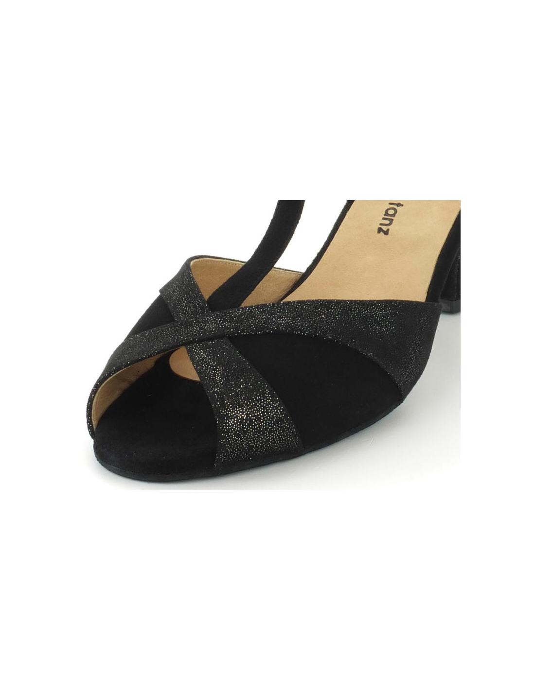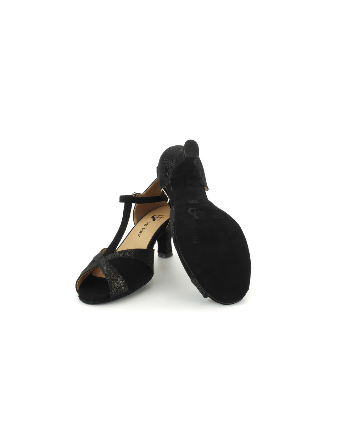 La Bella extra large est une chaussure standard de haute qualité, fabriquée en Europe, en cuir daim noir avec détail pailletté. Grâce à sa forme K extra-large et à son talon stable de 6cm, elle allie élégance et confort optimal, idéale pour les danseuses qui souhaitent allier un style sophistiqué à une forme plus généreuse.