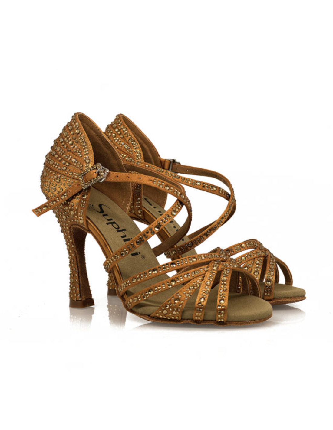 Chaussures de danse Suphini Kira cognac strass 10cm