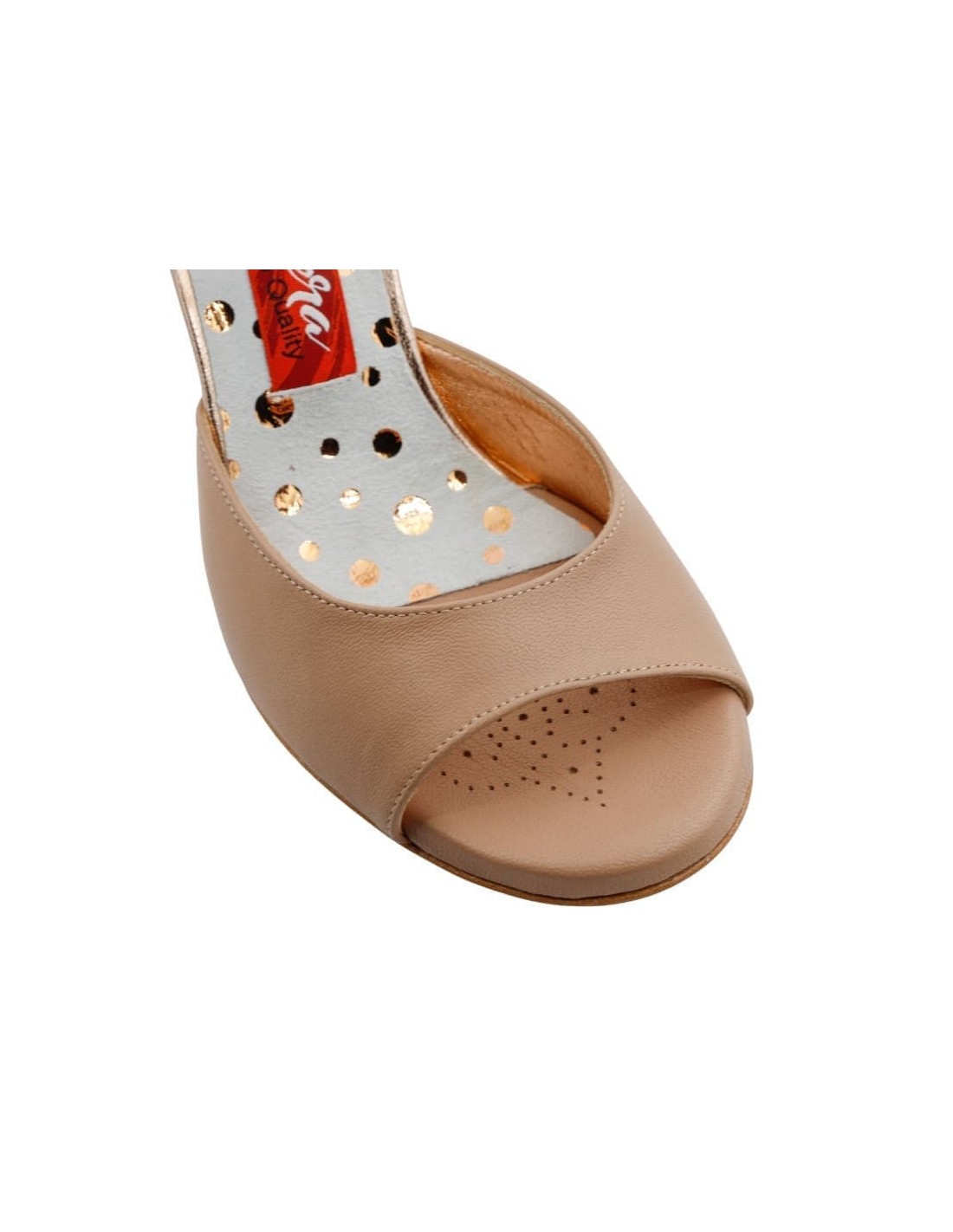 Que vous vous prépariez à votre prochaine milonga ou que vous dansiez en privé, le Tangolera Iris Beige en cuir peau et rosé est conçu pour vous permettre de rester stylé, stable et sans douleur.