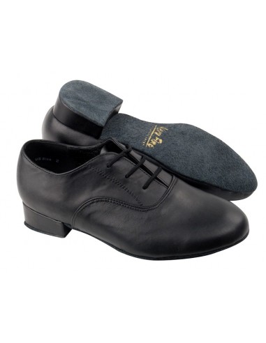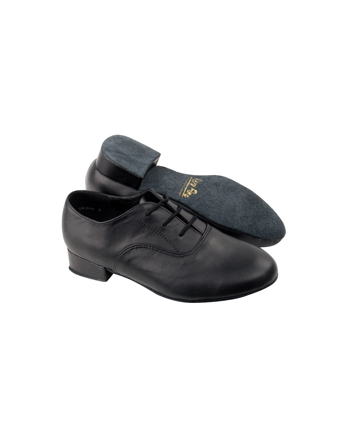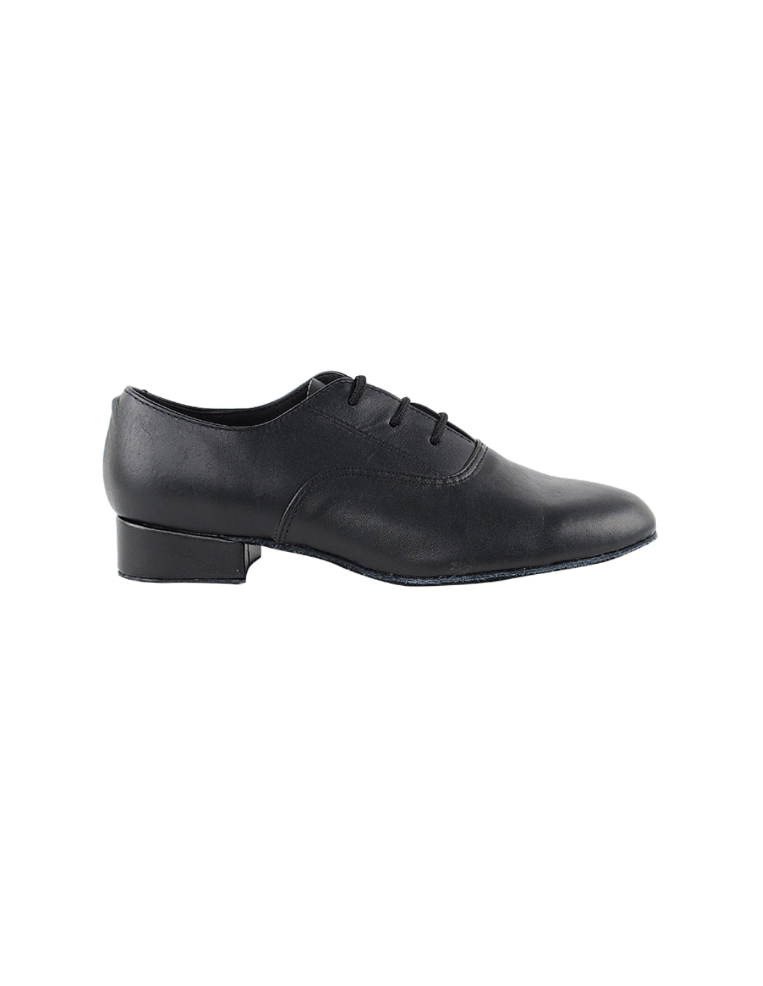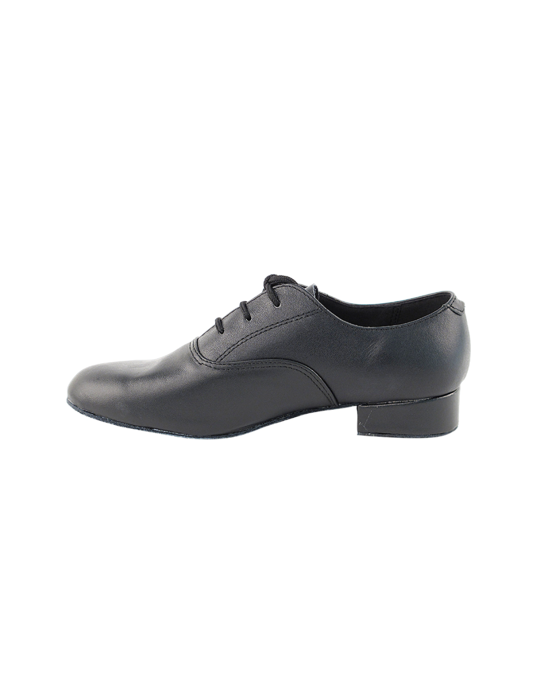Chaussure de danse pour garçons de VeryFine Dancesport Shoes en cuir noir – semelle intérieure rembourrée, semelle en cuir chromé et talon de 2,5cm. Idéale pour la danse de salon, les danses standard et compétitions.