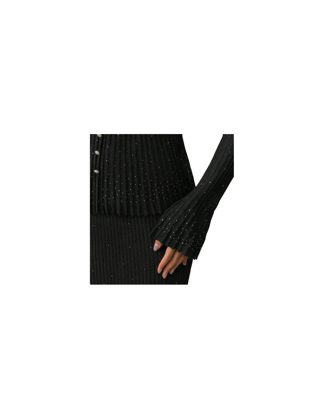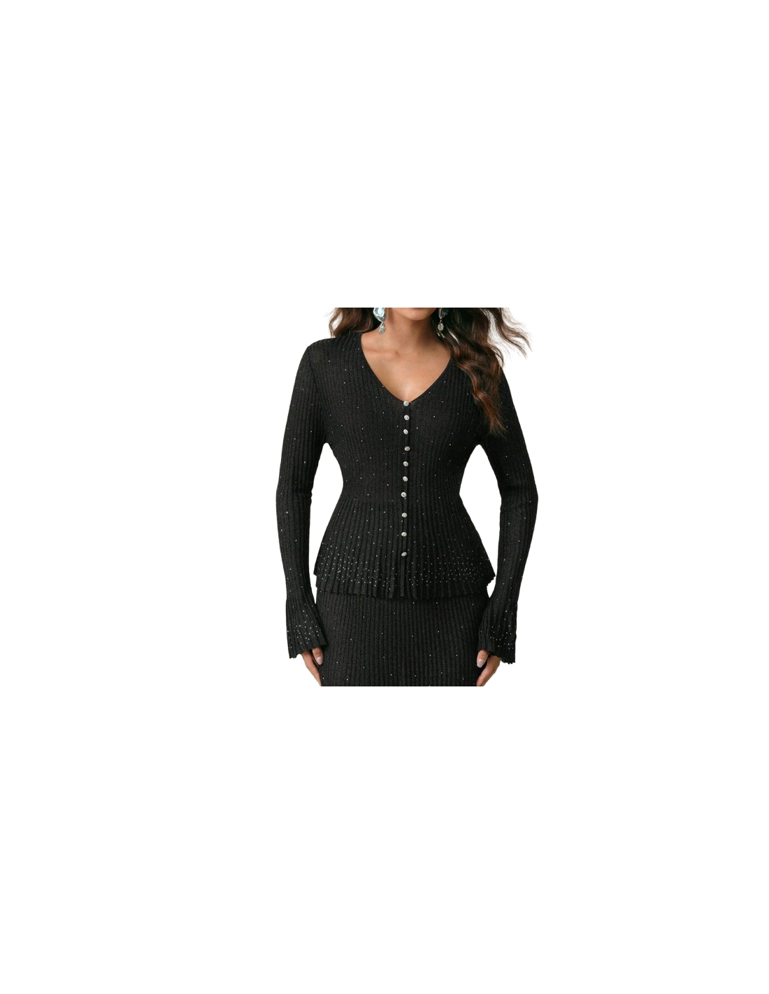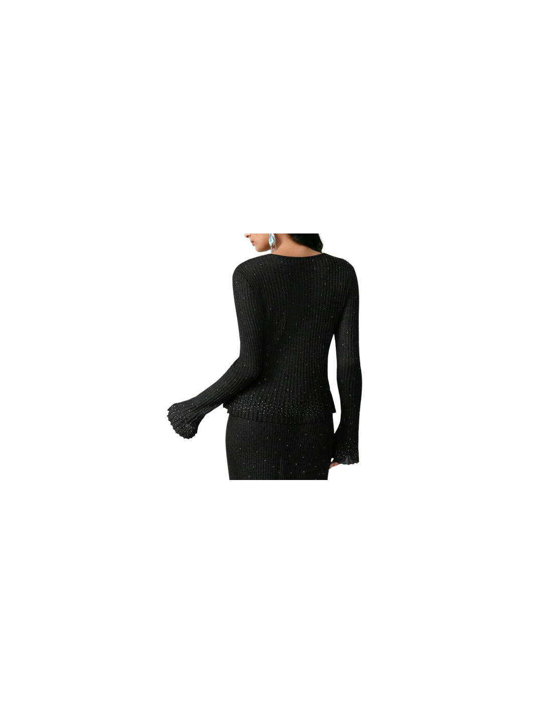 Top noir à paillettes avec strass et manches plissées