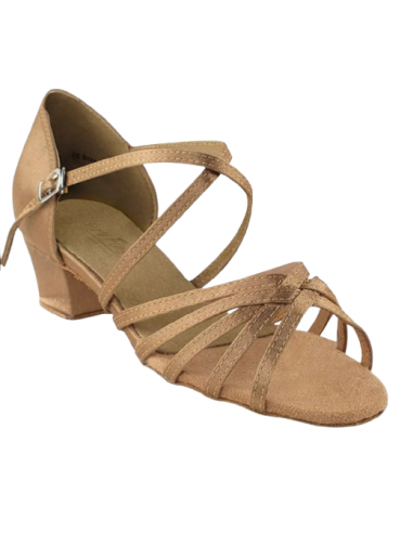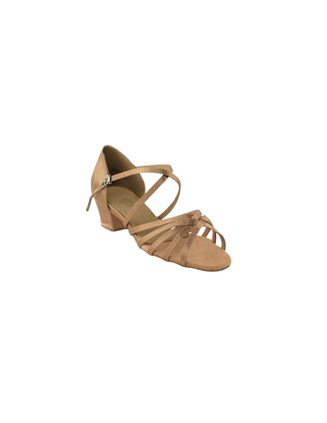 Ces chaussures de danse en satin neutre avec talon bloc et lanière croisée sont le choix parfait pour le West Coast Swing, la danse de salon, la linedance et l'entraînement.