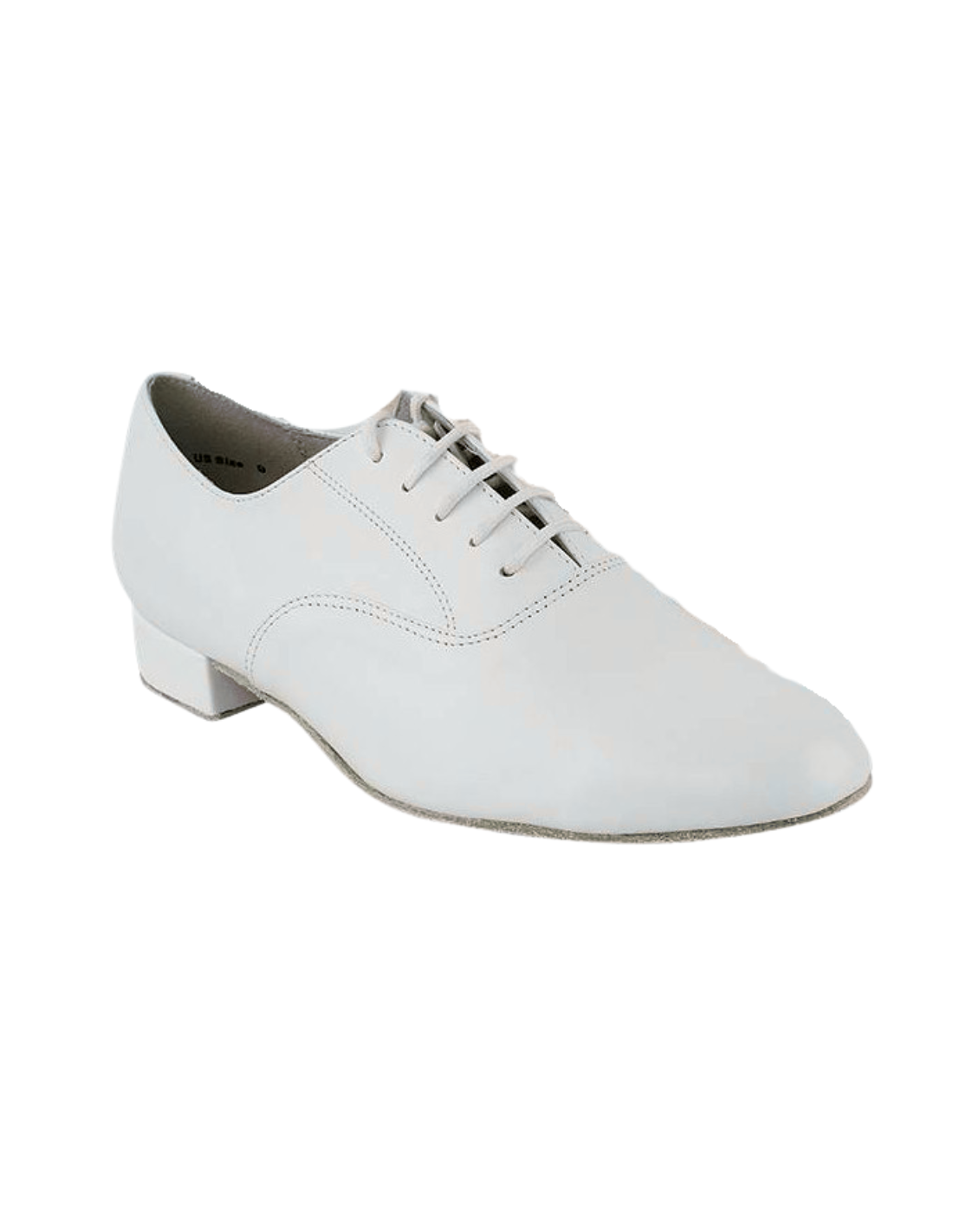 Elegant men's dance shoes from VeryFine Dancesport Shoes made of white leather – padded insole, chrome leather sole and 2.5cm heel. Ideal for ballroom dancing, salsa or white parties