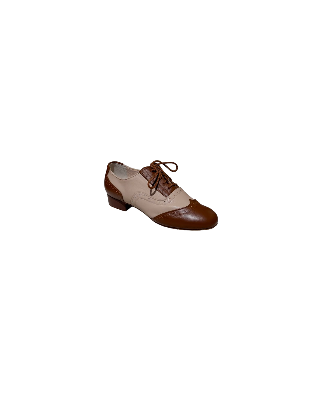 These beautiful lace-up shoes in caramel and beige leather are suitable for leaders in tango, ballroom, swing or linedance