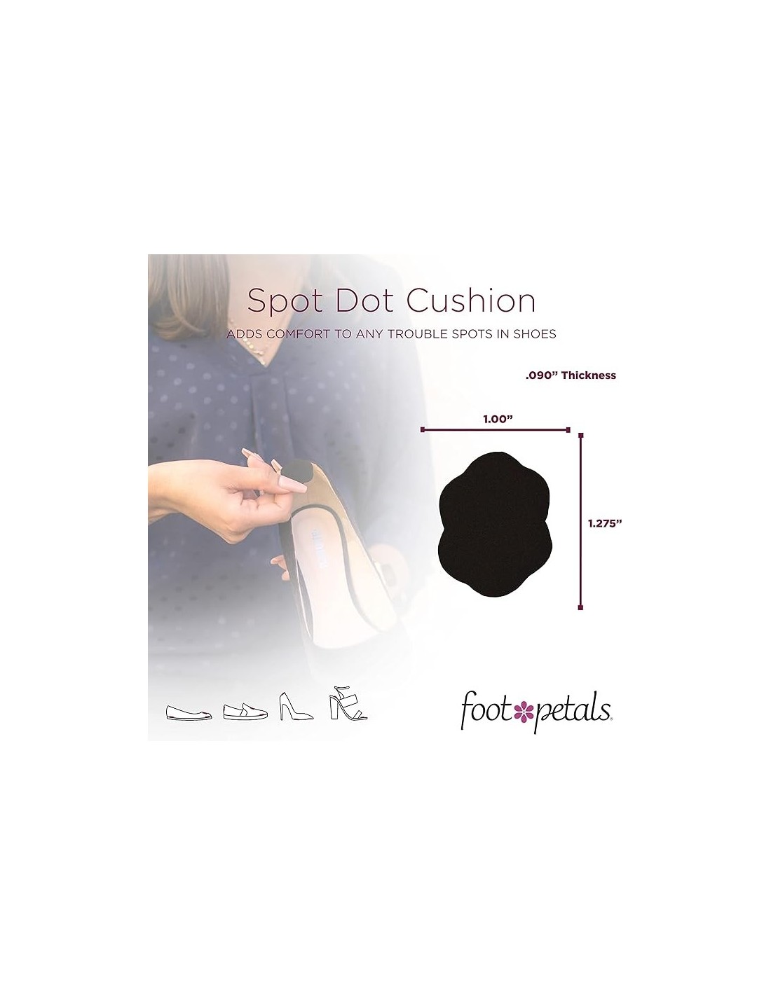 FootPetals are known for their high-quality, self-adhesive comfort cushions that reduce problems in shoes. Foot Petals Pressure Points Cushions provide noticeable comfort in your dance shoes. Soft, self-adhesive comfort cushions that reduce pressure at specific points and prevent friction. Perfect as dance shoe accessories for salsa, bachata, kizomba or line dancing.