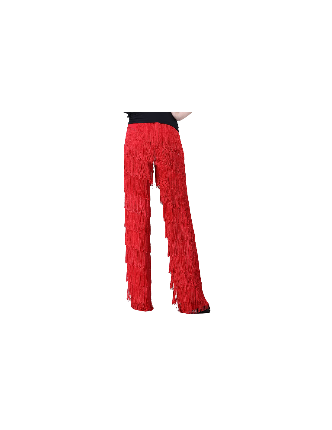 These red trousers with fringes draw all eyes to the dancers. Their original and elegant design makes them versatile, whether for salsa, bachata or standard dances. Their feminine cut creates a seductive silhouette. The fringes swing fluidly and emphasise every movement on the dance floor.
