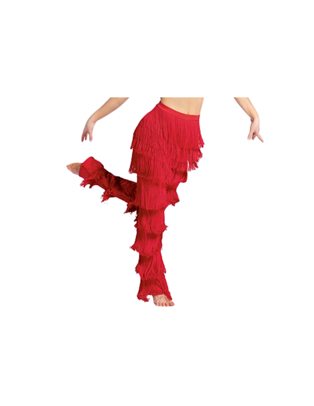 Each garment is carefully selected by Veryfine Suisse. With their modern shapes, feminine details and durable workmanship, our dance outfits are not only functional but also very aesthetic. These red trousers with fringes combine dynamism and elegance with a feminine and sexy touch.