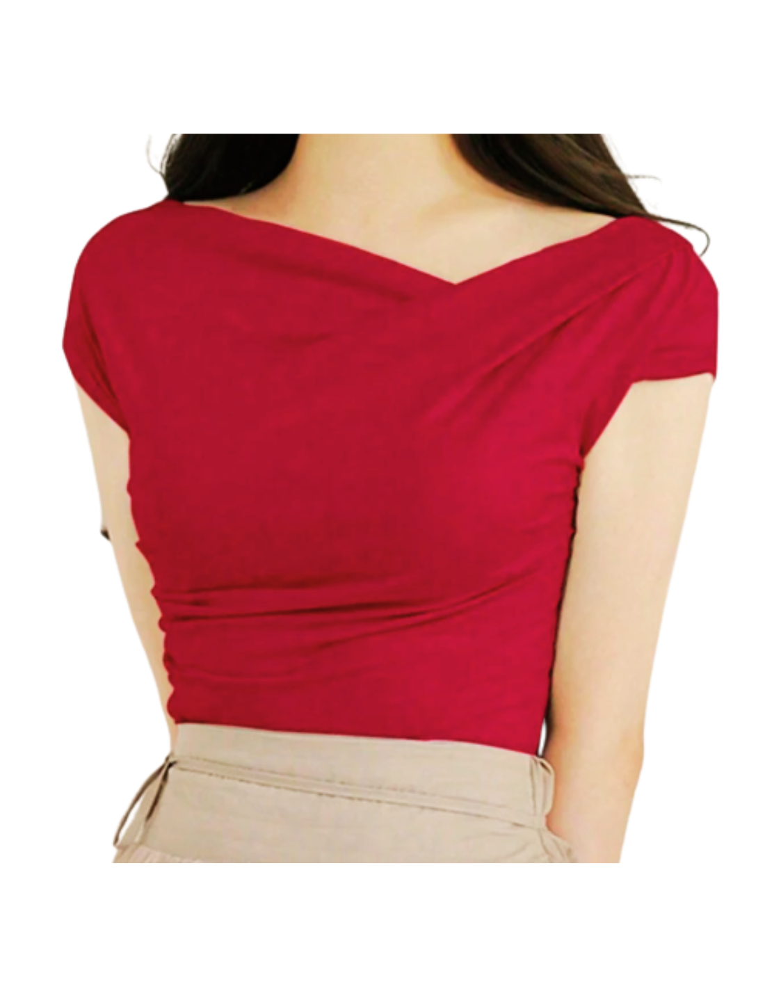Top da ballo rosso ciliegia con scollatura asimmetrica