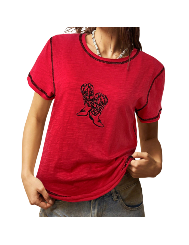 Maglietta rossa da ballo country con stivali ricamati